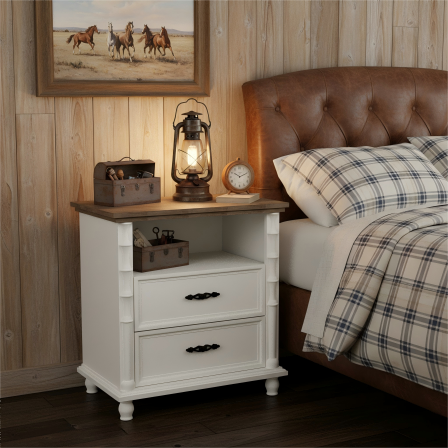 ODM/OEM ServiceWe provide flexible ODM/OEM service for this 2-drawer cabinet with open shelf, featuring a warm wood top, white painted body, turned legs and classic metal pulls. Size, color, top finish, hardware style, drawer layout and packaging can all be adjusted to fit your target market and test requirements.