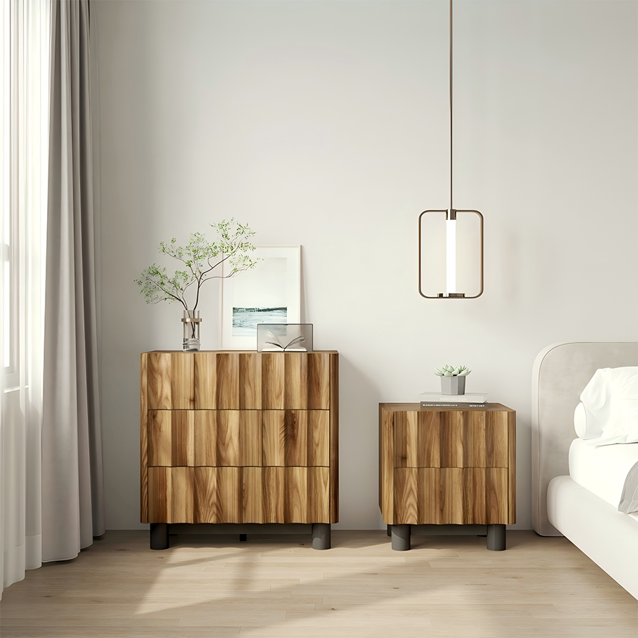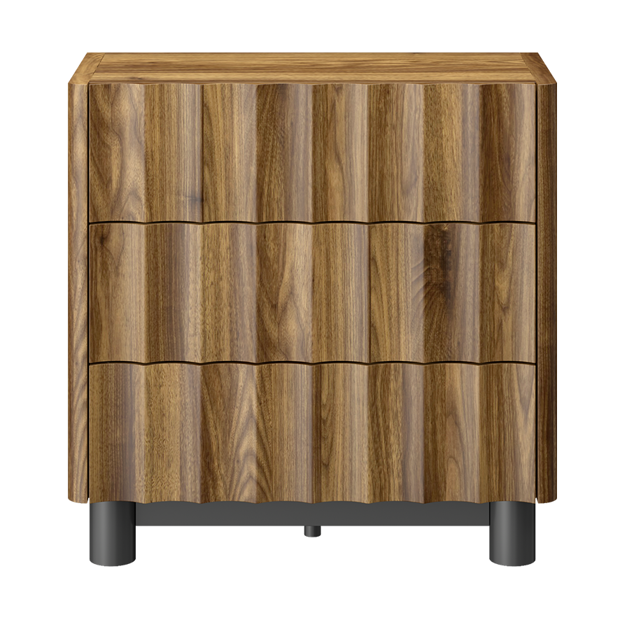 The Next Bestseller:Rhythmic ribbed fronts create striking texture that stands out in thumbnails.True 3-drawer storage with integrated wave pulls—minimal look, easy grip.Small-space friendly width (80 cm) yet everyday capacity.Full KD, ISTA-3A ready; finishes/hardware customizable for OEM/ODM programs.