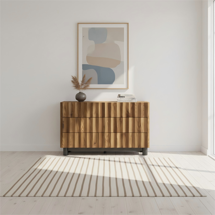 The Next Bestseller:Statement scallop texture that pops in thumbnails and lifestyle shots.True 6-drawer capacity with handle-less wave pulls—clean lines, easy use.Apartment-friendly depth (42 cm) yet generous storage.Full KD, ISTA-3A mail-order ready; finishes/hardware customizable (OEM/ODM).
