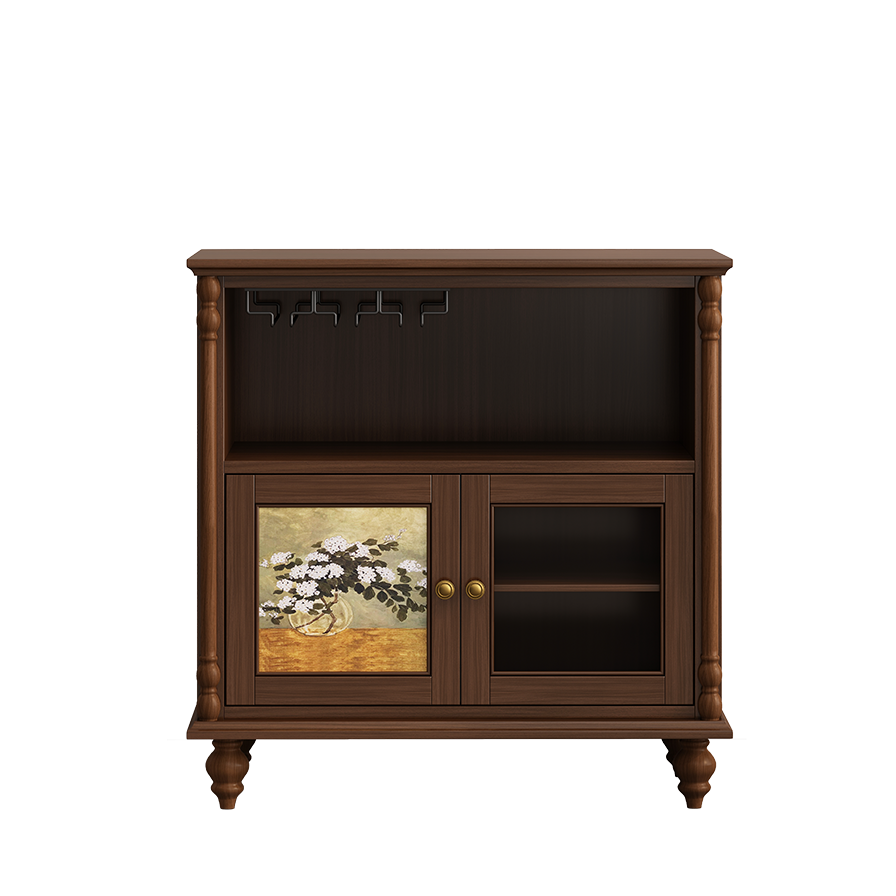 ODM/OEM ServiceWe offer ODM/OEM service for this bar cabinet featuring open niches, doors with floral artwork and traditional turned legs. Internal wine racks, glass holders, shelving, artwork style, finishes and hardware can all be specified to fit home bars or hospitality projects.