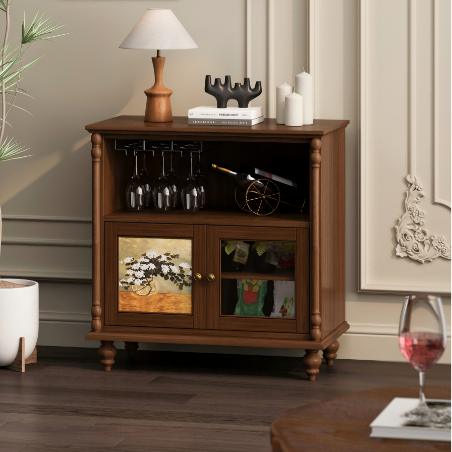 The Next Bestseller:Show + store in one piece: hanging glasses above, concealed and glass-front storage below.Distinct art panel creates thumb-stopping visuals in thumbnails and lifestyle shots.Apartment-friendly 40-cm depth; easy OEM/ODM finishes & hardware.Full KD, ISTA-3A mail-order ready.