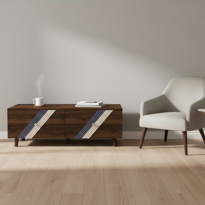 ODM/OEM ServiceWe provide ODM/OEM service for this low coffee table that extends the diagonal sash detail across a long, dark-wood top on slim legs. Size, height, storage options (drawers or lift top), leg style, finishes and stripe execution can all be customized to fit different sofa groups and living-room concepts.