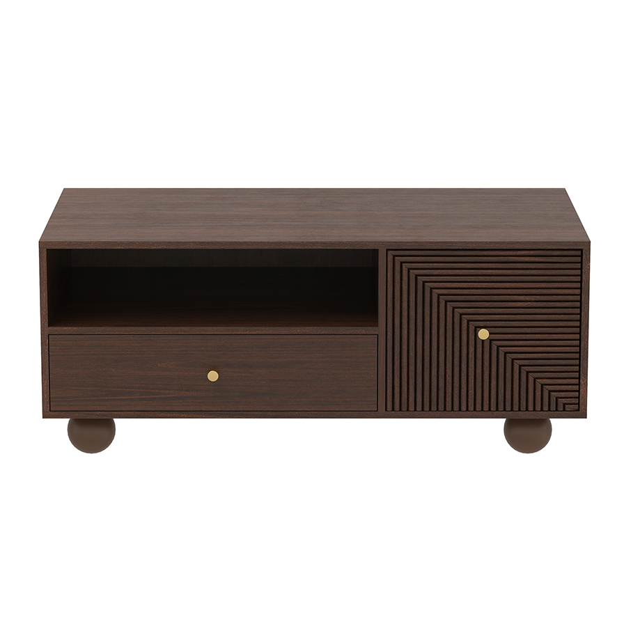 The Next Bestseller:Photogenic fluted face with brass accents—scroll-stopping visuals that convert.Smart storage: open cubby + drawer + hidden cabinet → tidy living, fewer returns.E-commerce ready: one-box KD, quick build, low breakage; coordinates with the series for easy bundling/AOV lift.