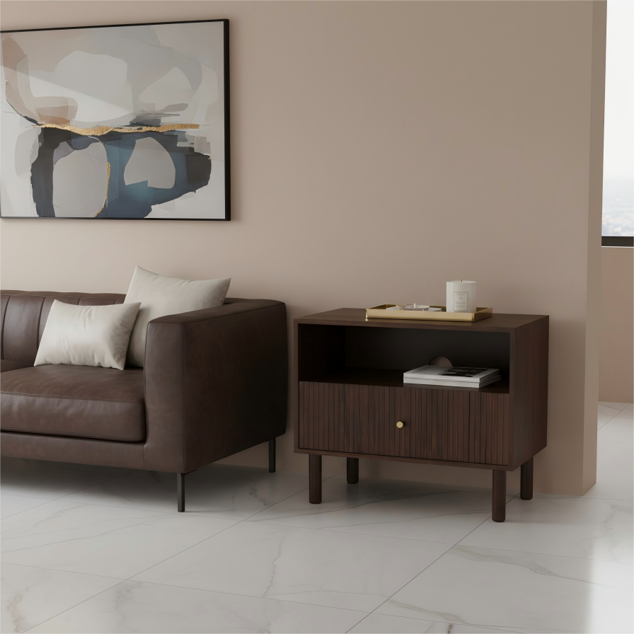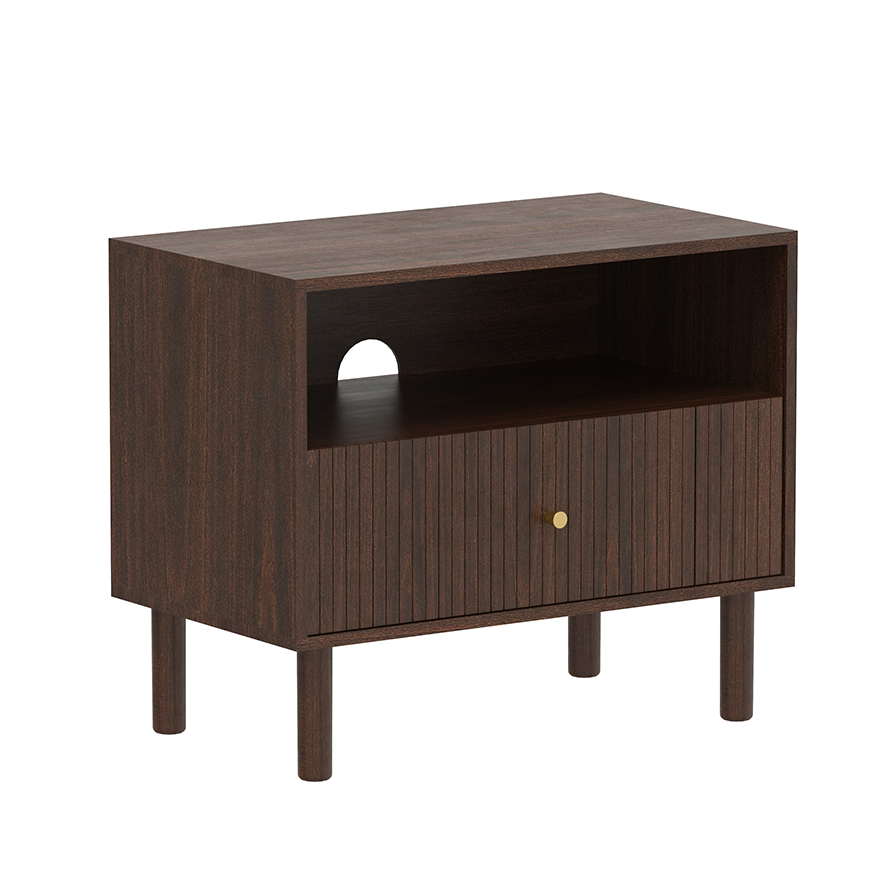 The Next Bestseller:One piece, many uses—nightstand, side table, or media perch. The open shelf + cable pass-through handles chargers/routers, while the fluted drawer hides clutter—compact, photogenic, easy to pair.