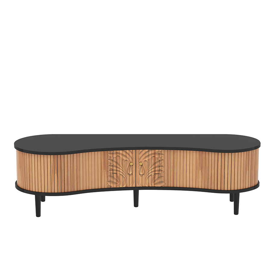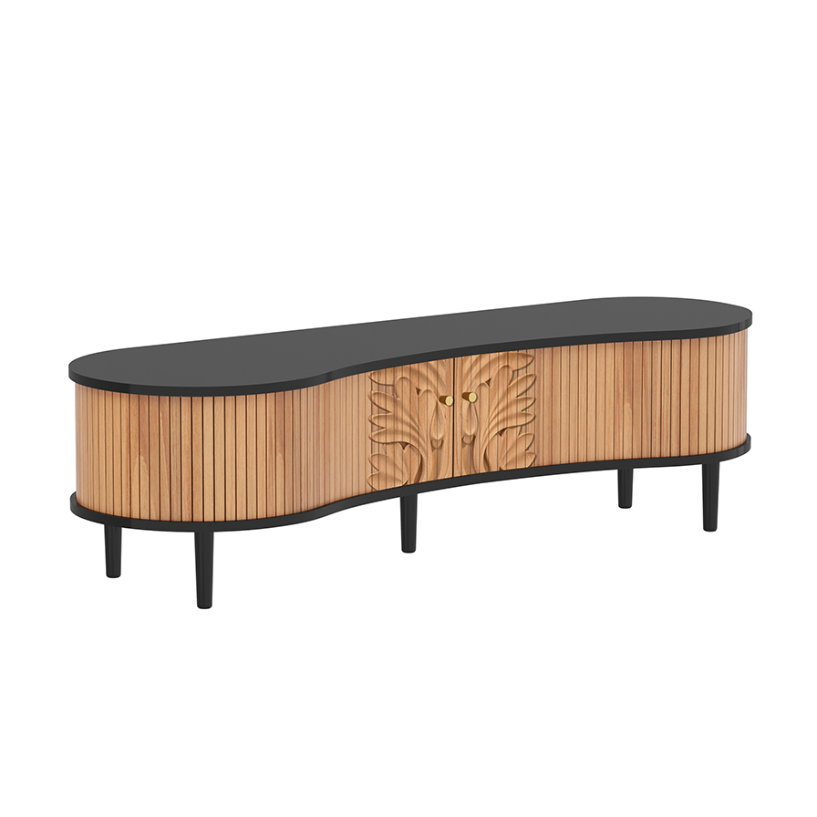 ODM/OEM ServiceWe offer flexible ODM/OEM service for this organic curved series with bean-shaped tops, fluted fronts and optional graphic panels (carving, waves, music notes, plain fronts, etc.). Sizes, corner radius, storage layout, leg height, finishes, hardware and front artwork can all be customized for TV units, sideboards, coffee tables, accent cabinets and other matching pieces.