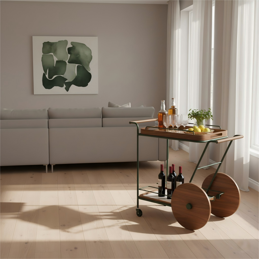 ODM/OEM ServiceWe offer full ODM/OEM support for this wood–metal bar cart, from early sketch to mass production. Frame geometry, wheel diameter, tray size and height, as well as metal colors (forest green, black, brass tones) and wood finishes (oak, walnut, custom stains) can all be tuned to your target style and price level. Bottle racks, glass holders, handles and casters can be reconfigured for home, hospitality or retail use, with custom logos on wheels, trays or packaging. For OEM projects we keep the core structure and adapt finishes, dimensions and branding; for ODM we can develop new silhouettes from your mood boards, build samples and certify stability, load and packaging to your market’s test standards.
